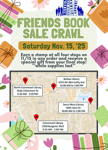 The legendary monthly weekend-long book sale sponsored by the Friends of the San Diego Public Library is back! We're seeking additional volunteers to join our team of enthusiastic book and library lovers in processing, sorting, and shelving incoming donations on Tuesdays and/or Thursdays between 9 AM and 12 noon each week.